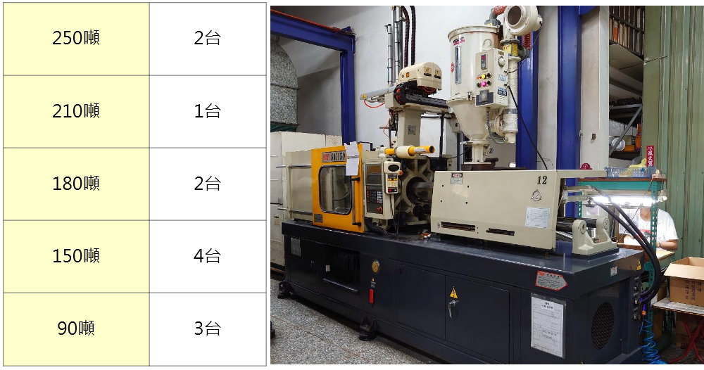 本公司射出成型機台共12台,全部採用全自動機械手臂夾取,料桶乾燥加裝除濕效能增強器,提高乾燥能力。